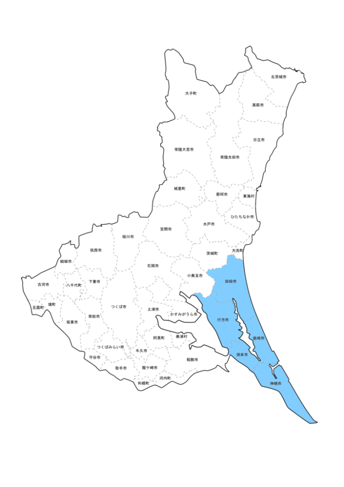 茨城県東部に位置する 鹿行(ろっこう)地域 は、鹿嶋市・神栖市・潮来市・行方市・鉾田市の5市で構成されるエリアです。